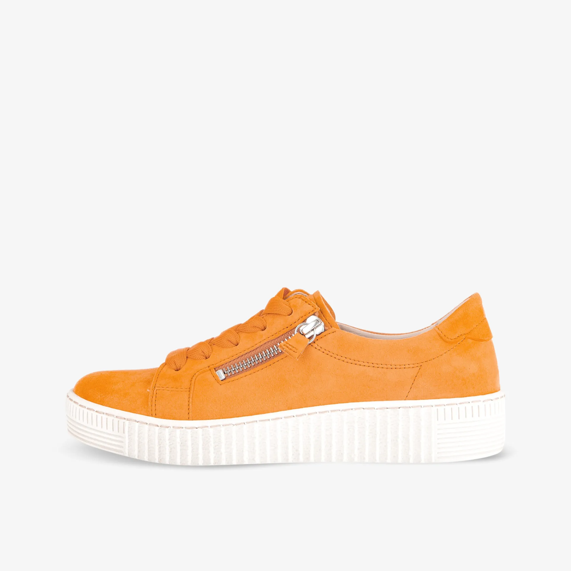 Die Plateau Schnürer von Gabor werden für dich schnell zur perfekten Wahl in Freizeit und Büro, so dass sie den besten Platz im Schuhregal bei dir zu Hause verdienen. Das verwendete gelbe Obermaterial ist nicht nur aus Veloursleder, sondern auch sehr anschmiegsam. Der Halbschuh verfügt außerdem über ein Wechselfußbett, das herausnehmbar ist und Platz für Einlagen bietet. Als Verschluss dürfen dabei die klassischen Schnürsenkel nicht fehlen.