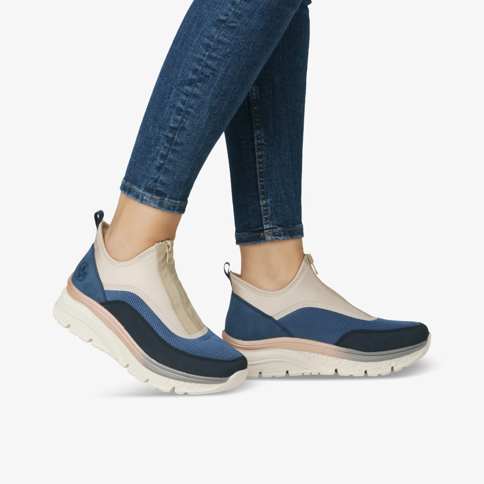 Rieker hat schöne Halbschuhe für stilbewusste Damen: Damit bist du sowohl tagsüber als auch abends stylish und komfortabel unterwegs. Hier kommt eine besonders funktionale Obermaterial-Kombination aus Textil und Synthetik zum Einsatz, die schick aussieht und die Schuhe zur ersten Wahl macht, denn sie sind zudem atmungsaktiv. Ergänzt wird das vegane Modell außerdem durch ein funktionales Wechselfußbett, das herausnehmbar ist und Platz für Einlagen bietet. Durch den Reißverschluss sind die Schuhe leicht angezogen und sitzen sicher am Fuß. Im Inneren findet sich eine Sohle aus Textil, die mit ihrer leichten Eigenschaft punktet und den Füßen auch an langen Tagen den bestmöglichen Komfort liefert.