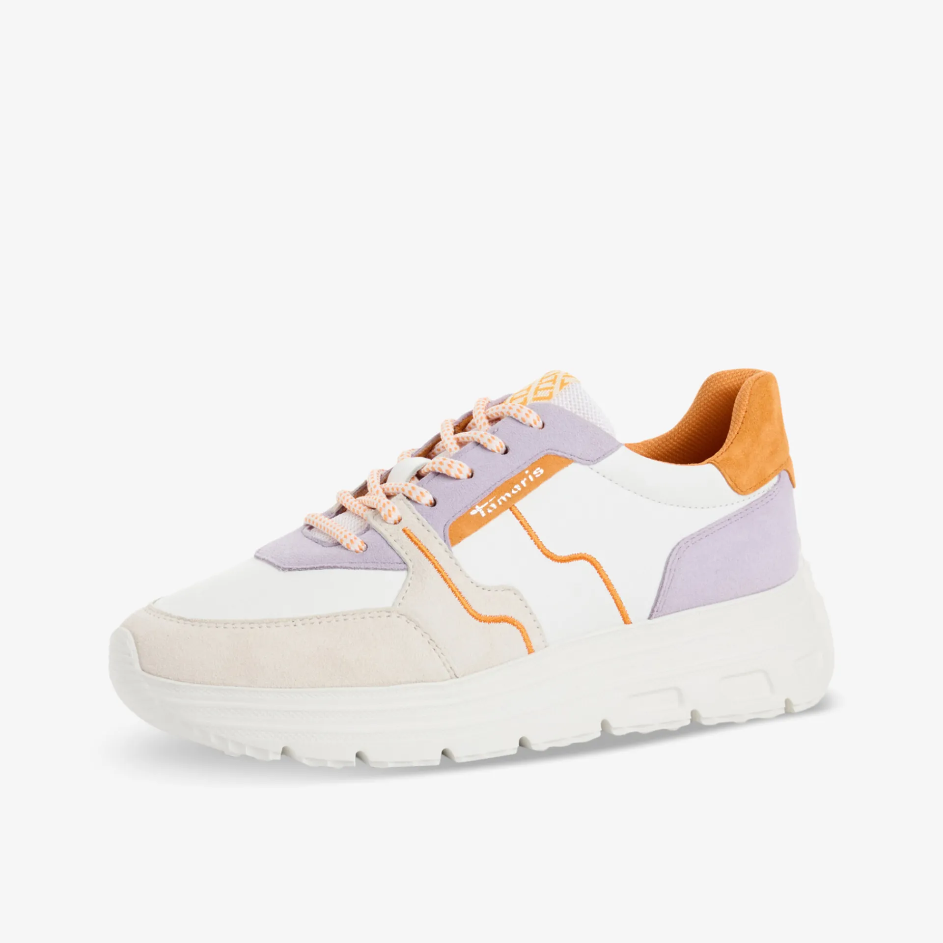 Mit dem Sneaker Low für Damen von Tamaris bist du immer gut angezogen – egal, ob du sportlich unterwegs bist oder einfach nur shoppen gehen willst. Die schicke Optik kombiniert mit dem bequemen Sitz des Schuhs ist einfach unschlagbar. Hier kommt eine besonders praktische Obermaterial-Kombination aus Leder und Textil zum Einsatz, die schick aussieht und die Schuhe zur ersten Wahl macht, denn sie sind zudem anschmiegsam. Der Sneaker verfügt außerdem über ein Wechselfußbett, das herausnehmbar ist und Platz für Einlagen bietet. Eine zeitlose Schnürung dient als fester Verschluss. Die Innensohle aus Textil ist besonders leicht und trotzdem optimal gepolstert, um den Fuß bestmöglich zu unterstützen.