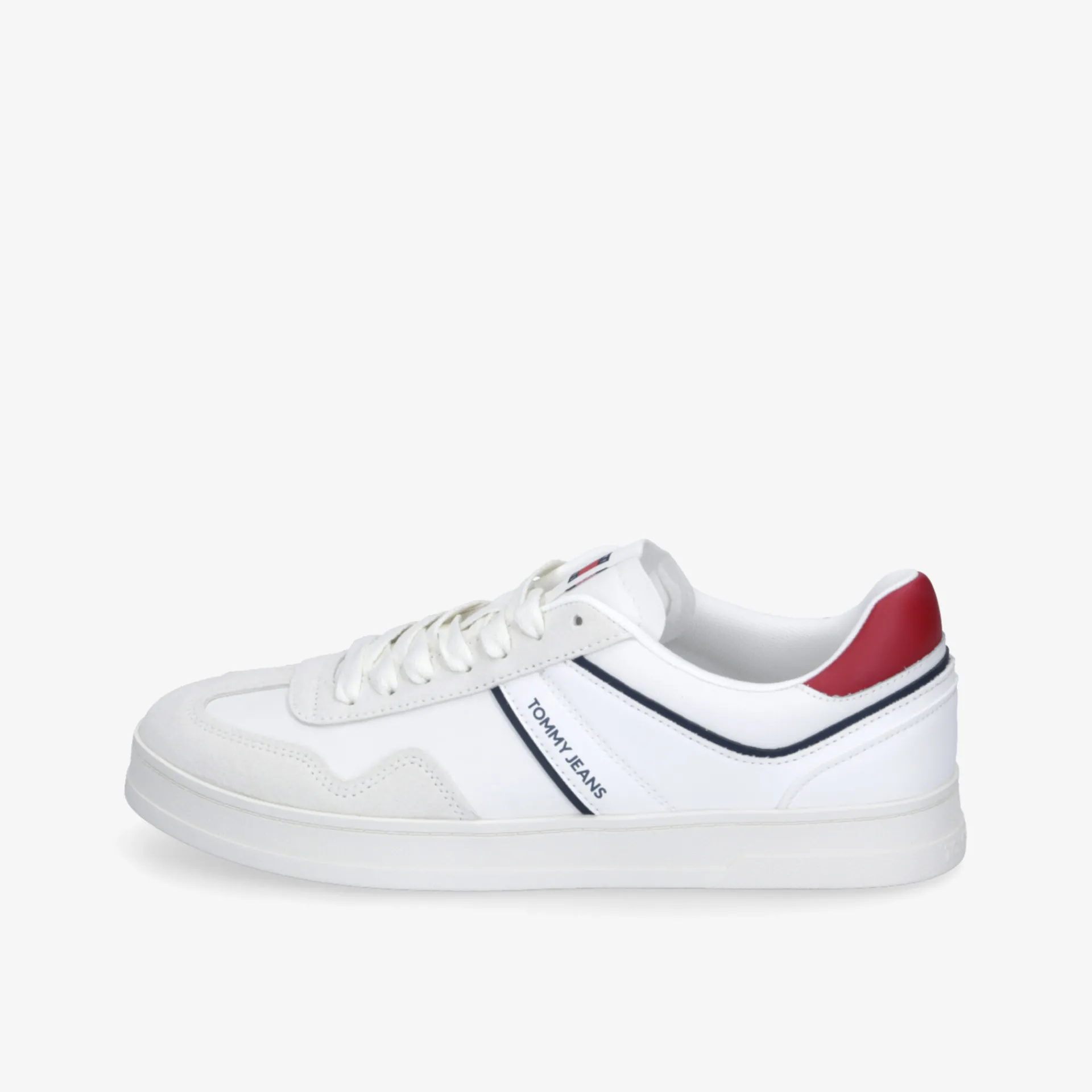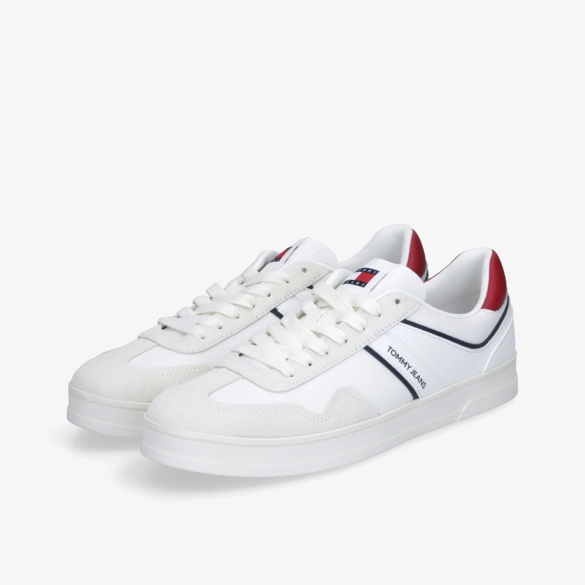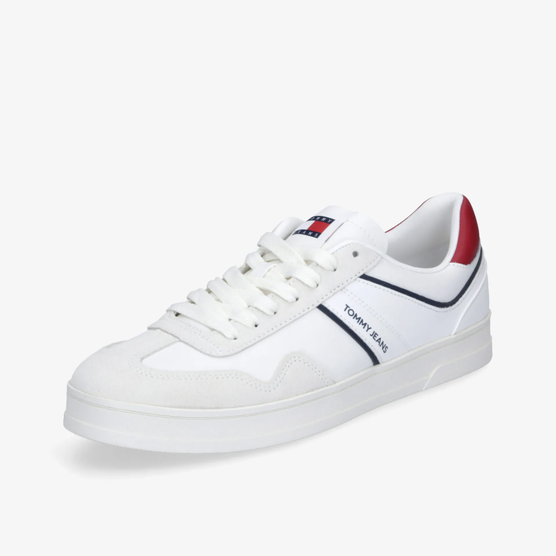 Perfekter Tragekomfort, sportliche Form und ein cooles Design – das bieten die Low Top Sneaker für Herren von TOMMY JEANS. Das weiße Veloursleder überzeugt sowohl optisch als auch mit den anschmiegsamen Materialeigenschaften des natürlichen Produkts. Für den festen Sitz am Fuß kann die Schnürung individuell angepasst werden.